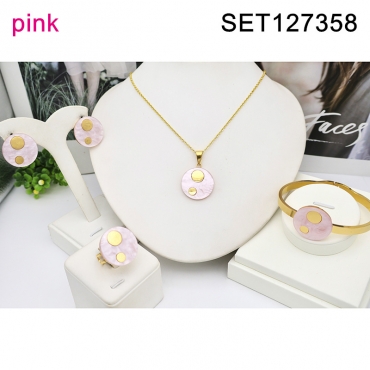 Level B Stainless Steel New Trendy Women Jewelry Pink Round Resin Golden 4 pcs SET