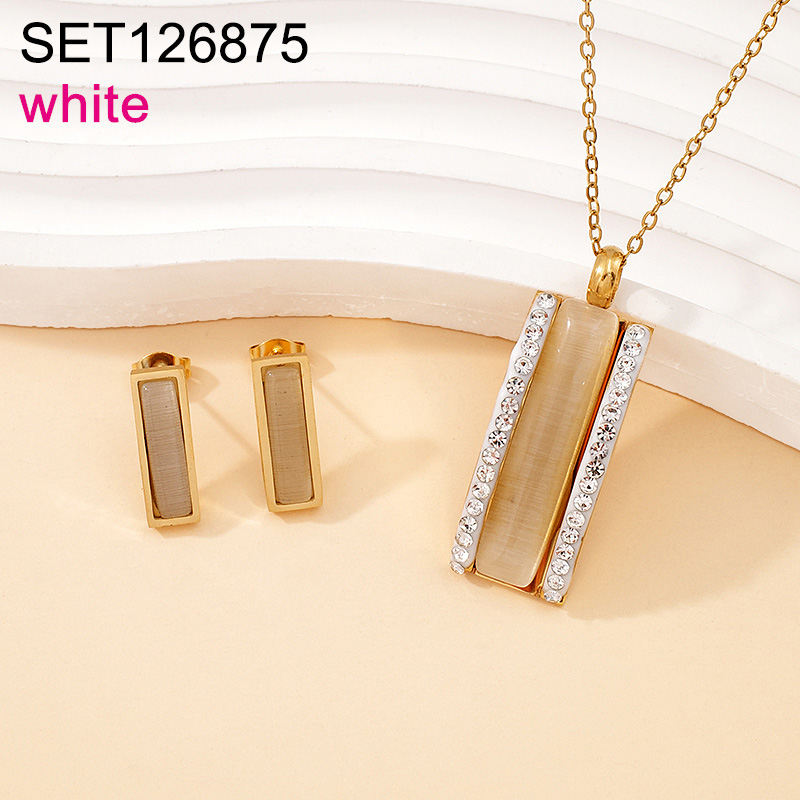 Level B Stainless Steel New Trendy Women Jewelry Rectangle Opal Golden SET