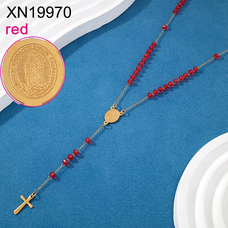 Home > Level B Stainless Steel New Trendy Women Jewelry Red Bead Chain Religion Cross Golden Necklace