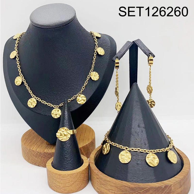 Level B Stainless Steel New Trendy Women Jewelry Round Golden 4pcs SET