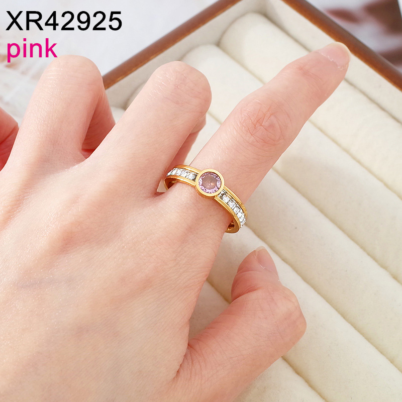 Level B Stainless Steel New Trendy Women Jewelry Round Pink Stone Golden Rings