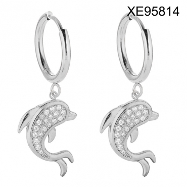 Home > Level B Stainless Steel New Trendy Women Jewelry Summer beach Animal Dolphin Steel color Hoop Earrings