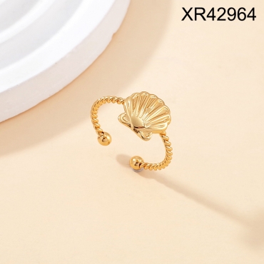 Home > Level B Stainless Steel New Trendy Women Jewelry Summer beach Animal Shell Golden Open Rings;Ring size can be adjusted freely
