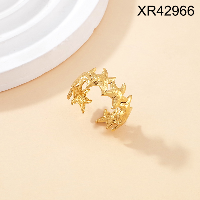 Level B Stainless Steel New Trendy Women Jewelry Summer beach Animal Starfish Golden Open Rings;Ring size can be adjusted freely