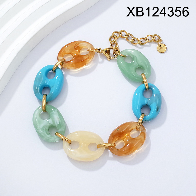 Level B Stainless Steel New Trendy Women Jewelry Thick Chain Pig nose Oval Golden Bracelet