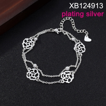 Home > Level B Stainless Steel New Trendy Women Jewelry Two Layers Chain Flower Plating Silver Bracelet