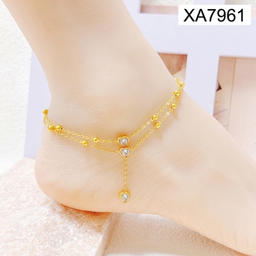 Level B Stainless Steel New Trendy Women Jewelry Two Layers Chain Heart Golden Valentine's Day Anklet
