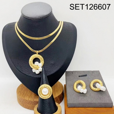 Home > Level B Stainless Steel New Trendy Women Jewelry Two Layers Chain Pearl Style/Plastic Beads Round Golden 3pcs SET