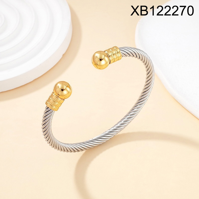 Level B Stainless Steel New Trendy Women Jewelry Two Tone Open Bangle;Bangle size can be adjusted freely