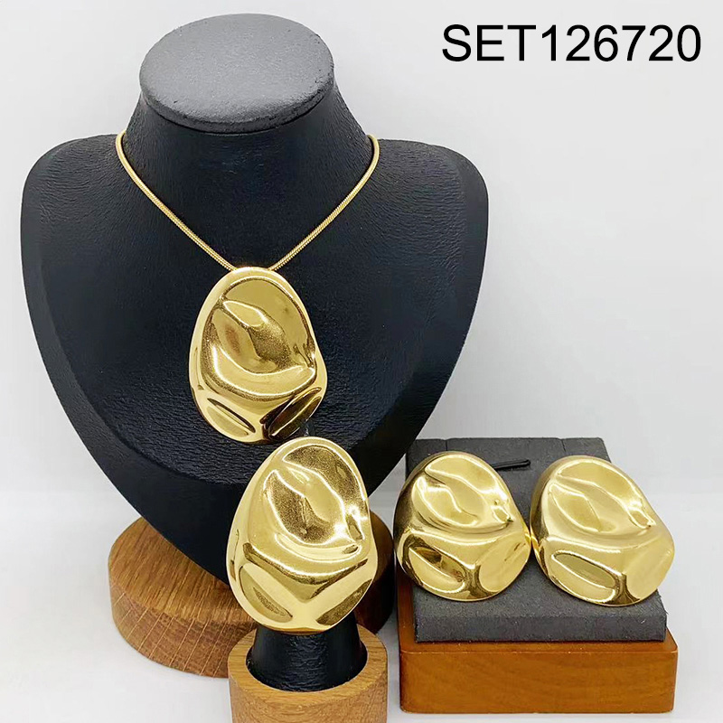 Level B Stainless Steel New Trendy Women Jewelry Water Drip Golden 3pcs SET