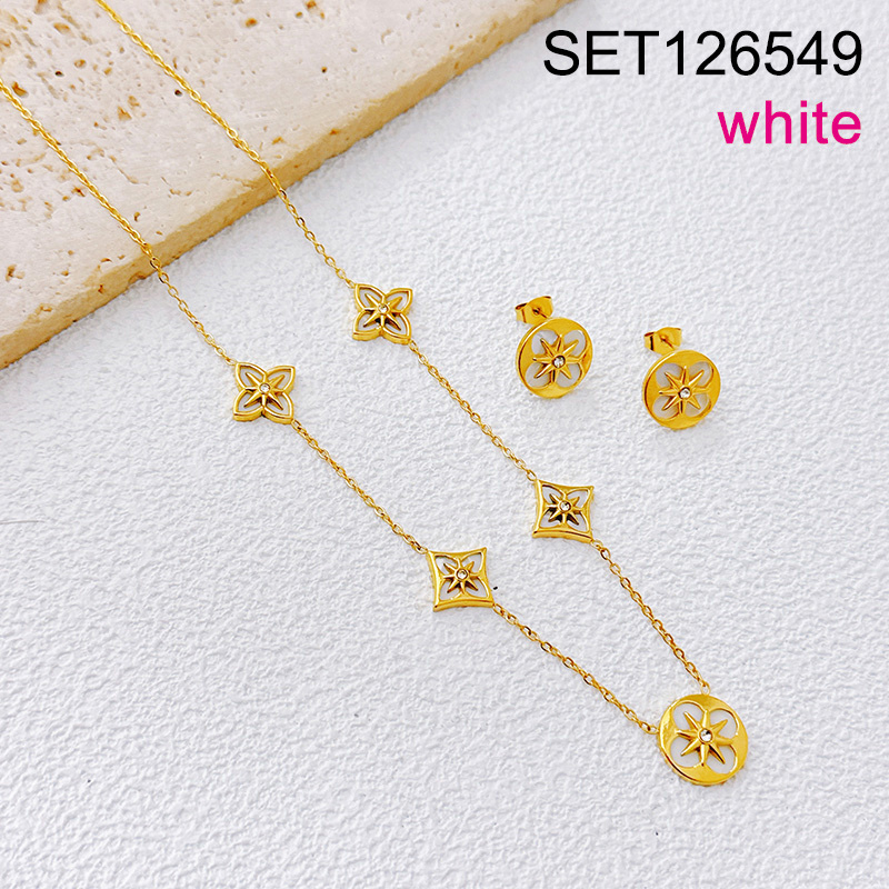 Level B Stainless Steel New Trendy Women Jewelry White SYC Eight-Pointed Star Golden SET