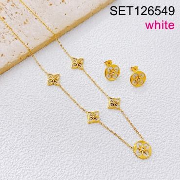 Home > Level B Stainless Steel New Trendy Women Jewelry White SYC Eight-Pointed Star Golden SET
