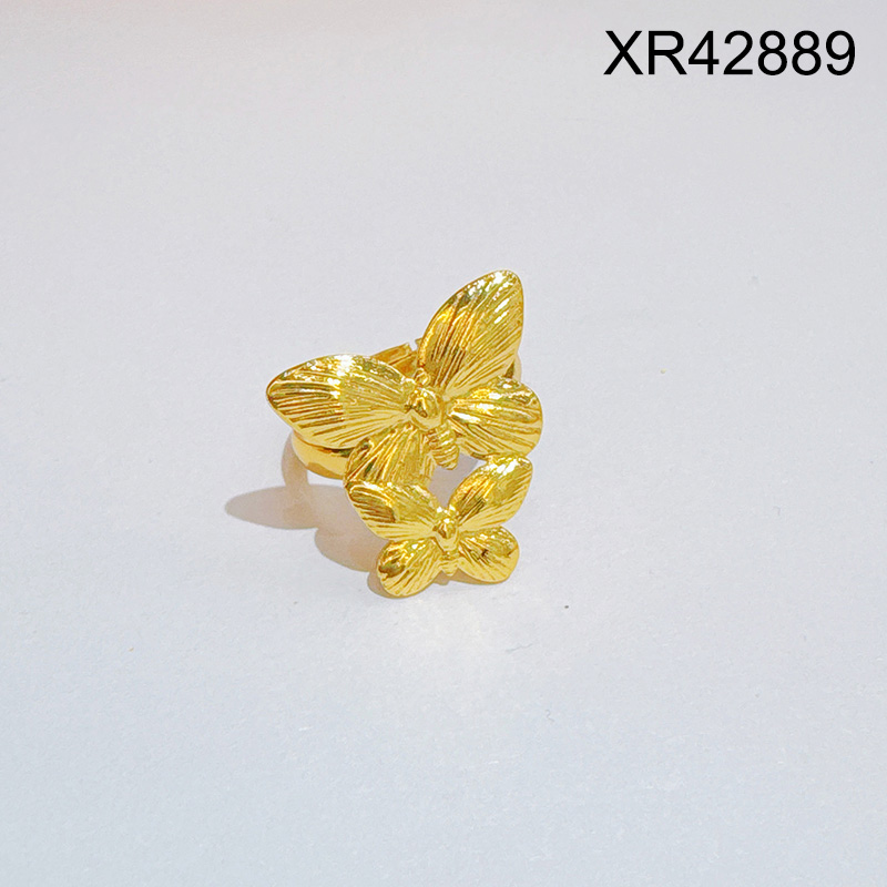 Level C Stainless Steel New Trendy Women Jewelry Animal Butterfly Golden Open Rings;Ring size can be adjusted freely