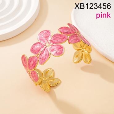 Level C Stainless Steel New Trendy Women Jewelry Drip Oil/Enamel Flower Golden Open Bangle;Bangle size can be adjusted freely