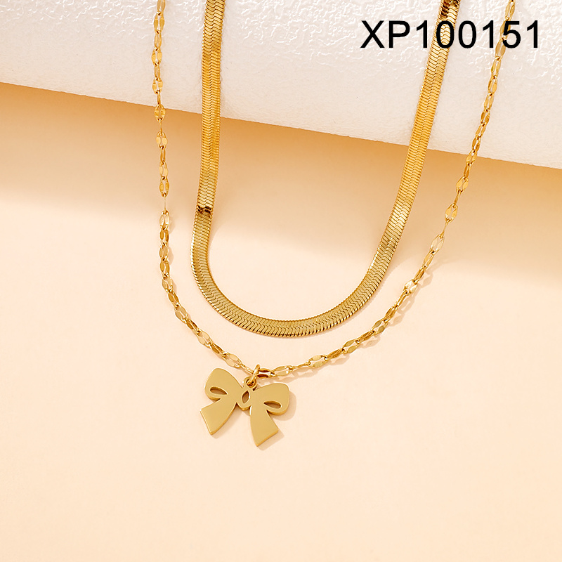 Home > Level C Stainless Steel New Trendy Women Jewelry Two Layers Chain Bowknot Golden Pendant