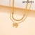 Level C Stainless Steel New Trendy Women Jewelry Two Layers Chain Bowknot Golden Pendant