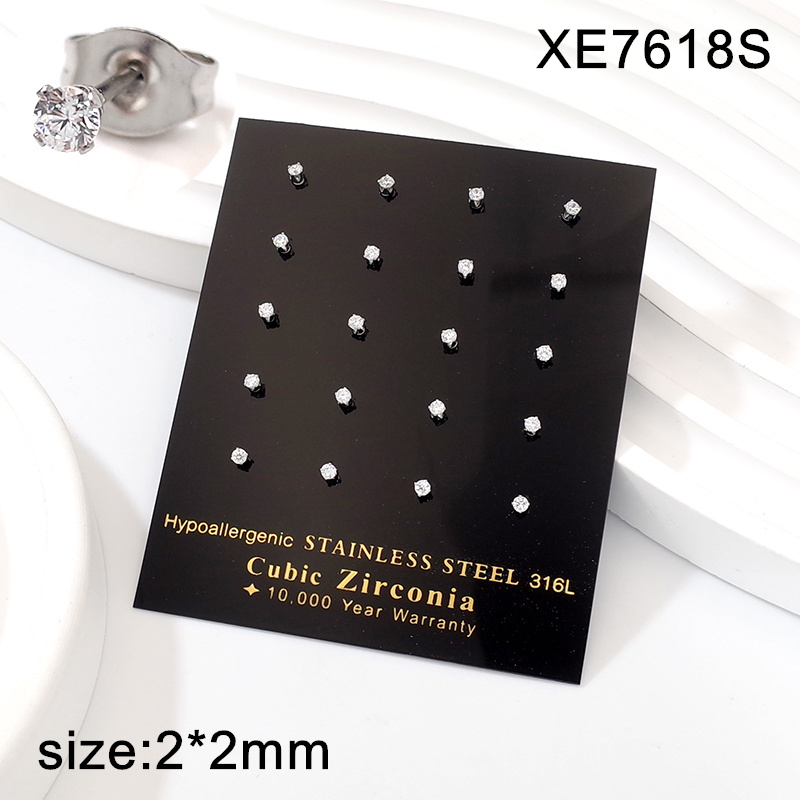 Stainless Steel Jewelry Hot Sale Steel color Round white Zircon Earrings