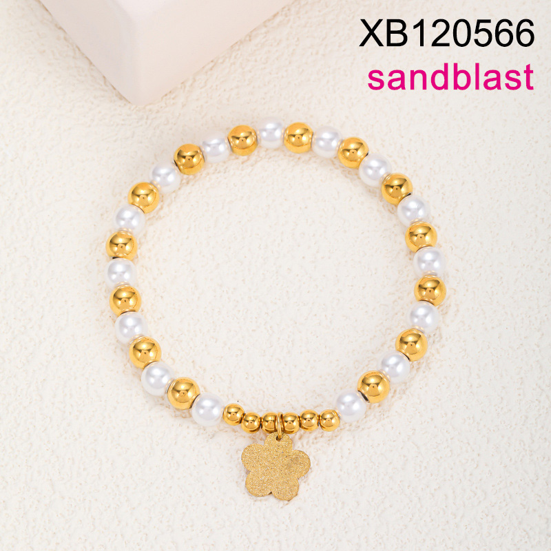 Home > Level B Stainless Steel New Trendy Women Jewelry Pearl Style/Plastic Beads Sandblast Flower Golden Bracelet
