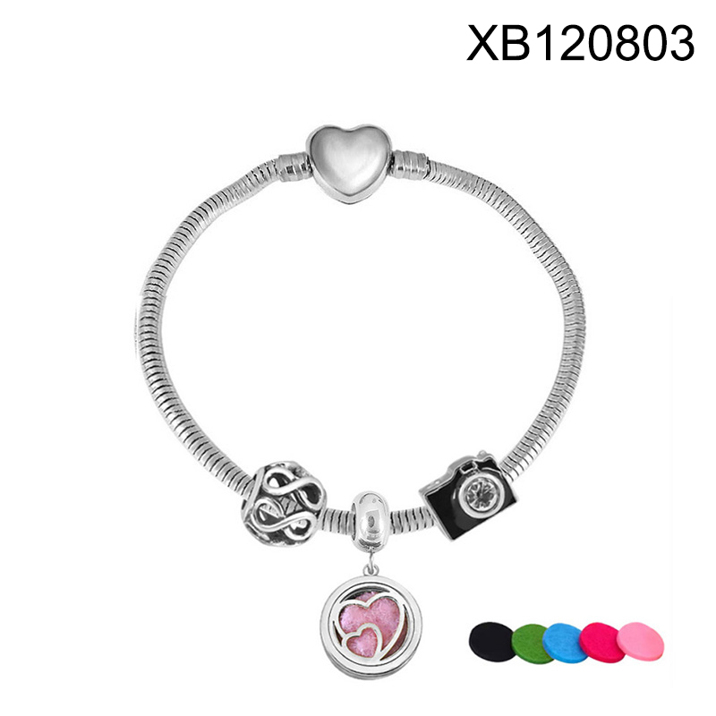Level B Stainless Steel New Trendy Women Jewelry Aromatherapy Essential Oil Diffusion Photo Frame Steel color Reassemble Charms Bracelet