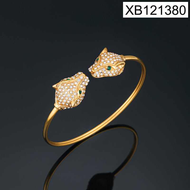 Level B Stainless Steel New Trendy Jewelry Animal Leopard Golden Open Bangle;Bangle size can be adjusted freely