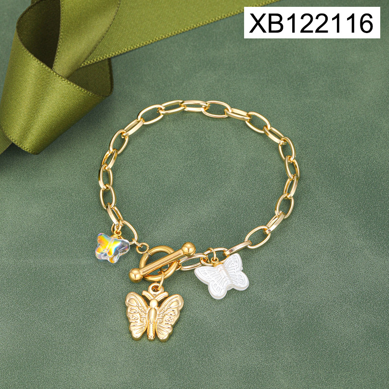 Level C Stainless Steel New Trendy Women Jewelry Pearl Style/Plastic Beads Animal Butterfly Golden Bracelet