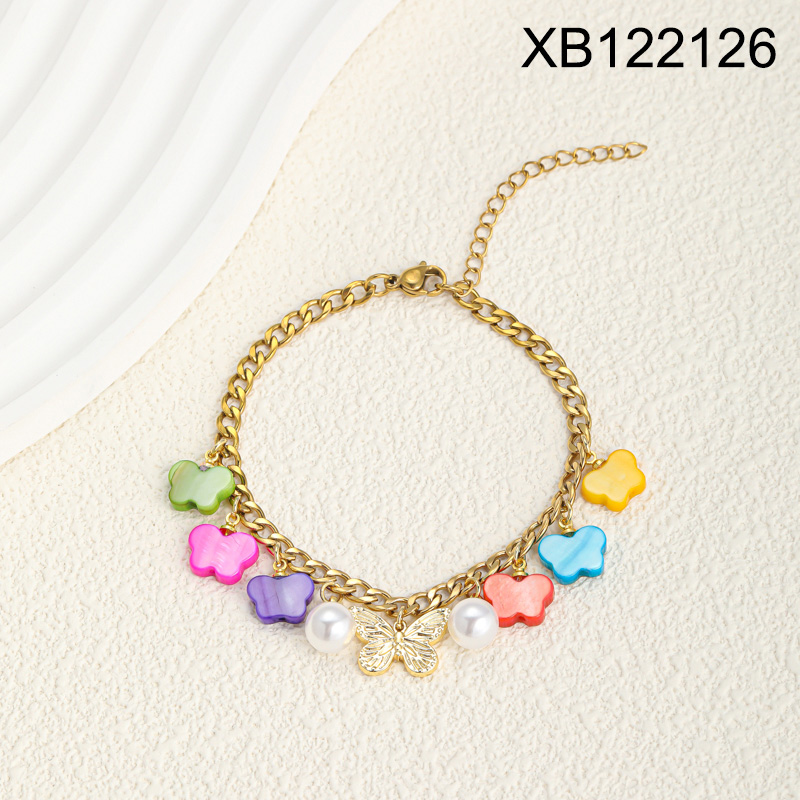 Level C Stainless Steel New Trendy Women Jewelry Pearl Style/Plastic Beads Animal Butterfly Golden Bracelet
