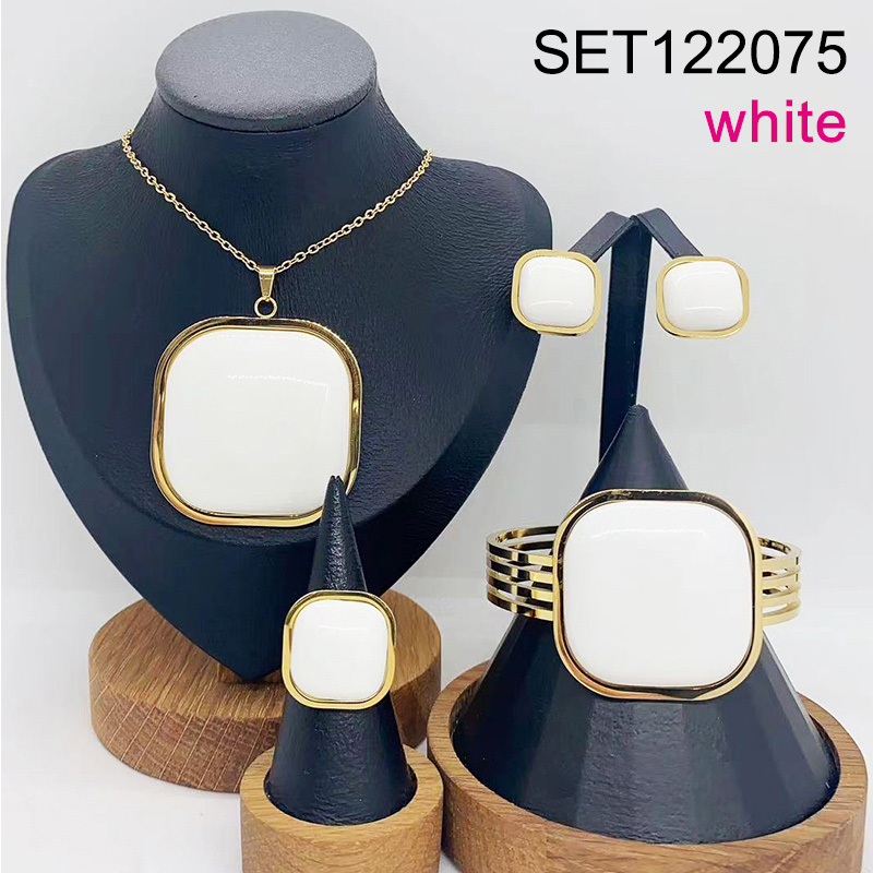 Level B Stainless Steel Jewelry New Trend White Geometry Golden 4pcs SET