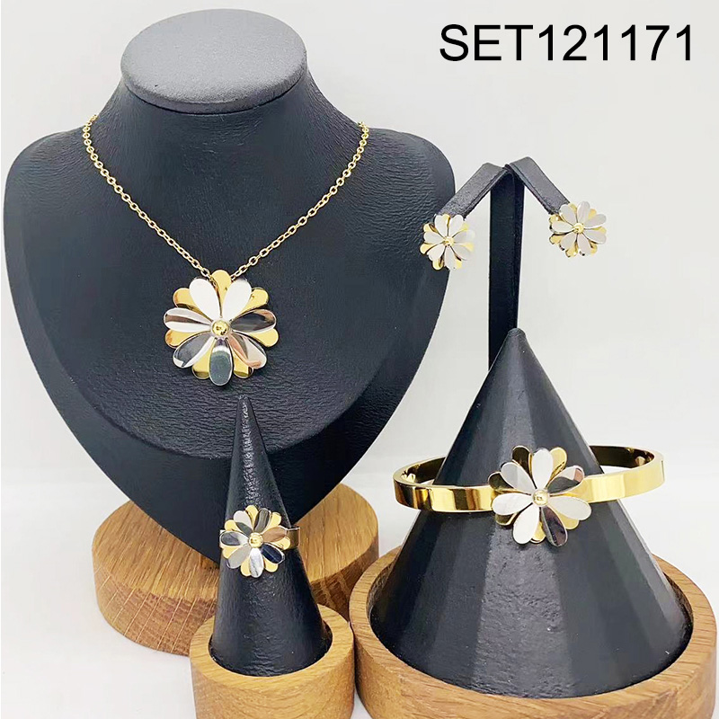 Level B Stainless Steel Jewelry New Trend Flower Two Tone 4pcs SET