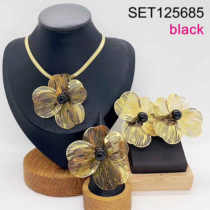 Level B Stainless Steel New Trendy Women Jewelry Flower Golden 3pcs SET