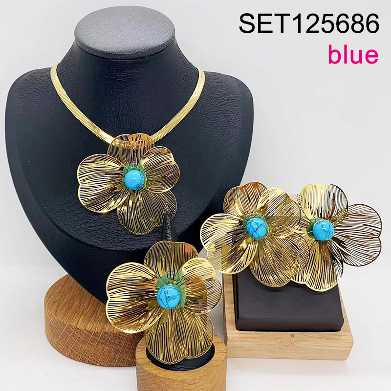Level B Stainless Steel New Trendy Women Jewelry Flower Golden 3pcs SET