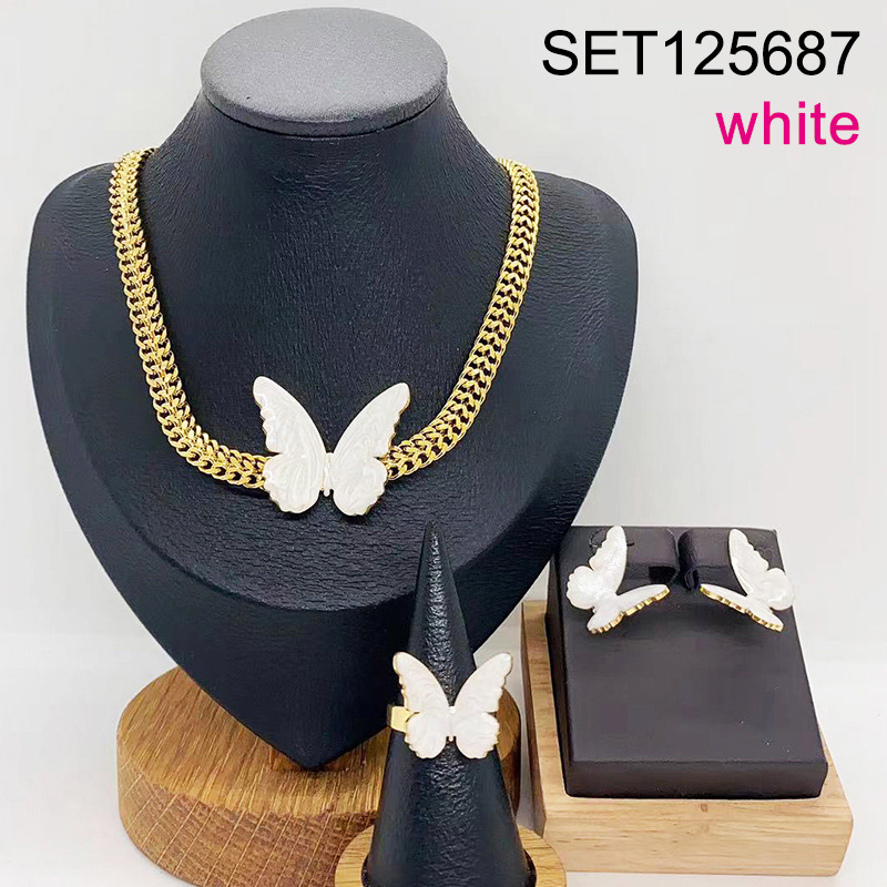 Home > Level B Stainless Steel New Trendy Women Jewelry Animal White Butterfly Golden 3pcs SET