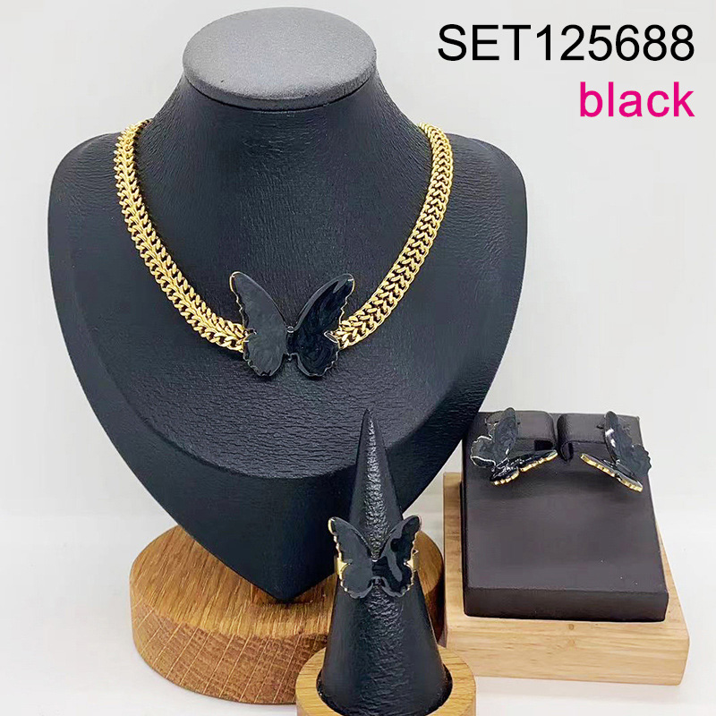 Level B Stainless Steel New Trendy Women Jewelry Animal Black Butterfly Golden 3pcs SET