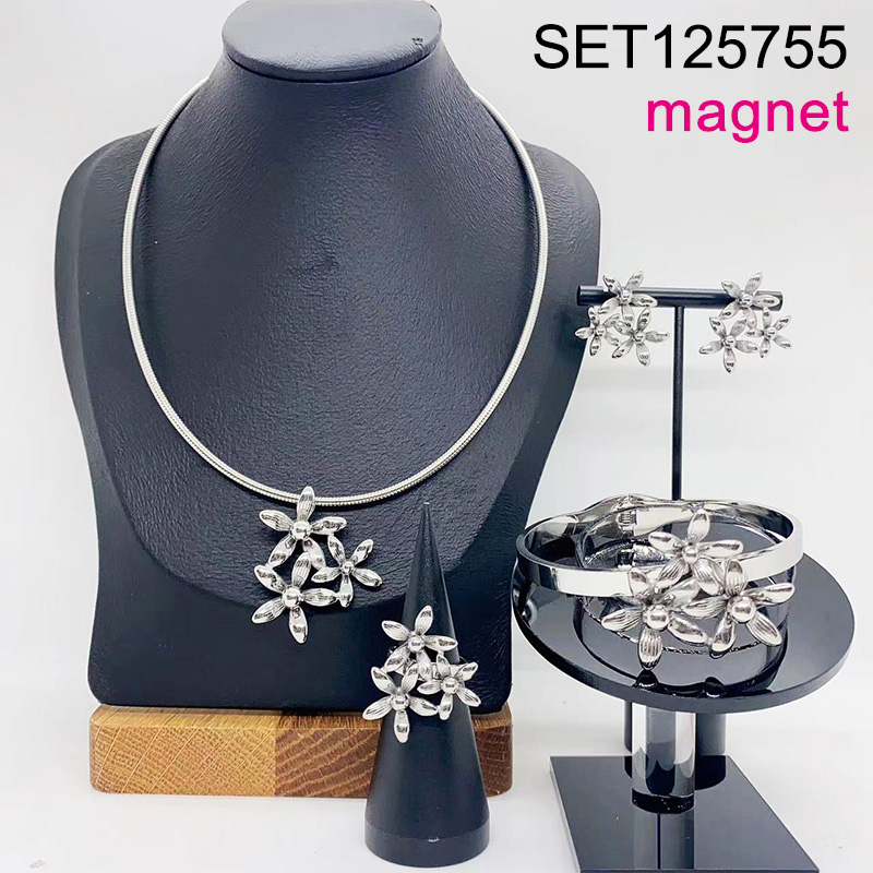 Level B Stainless Steel New Trendy Women Jewelry Flower Magnet buckle Steel color 4pcs SET