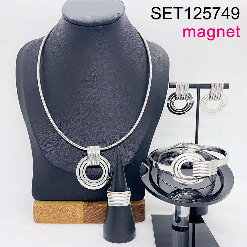 Level B Stainless Steel New Trendy Women Jewelry Magnet buckle Steel color 4pcs SET