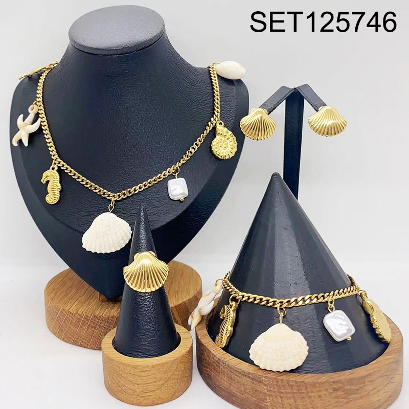 Level B Stainless Steel New Trendy Women Jewelry Summer beach Shell Conch Seahorse Golden 4pcs SET