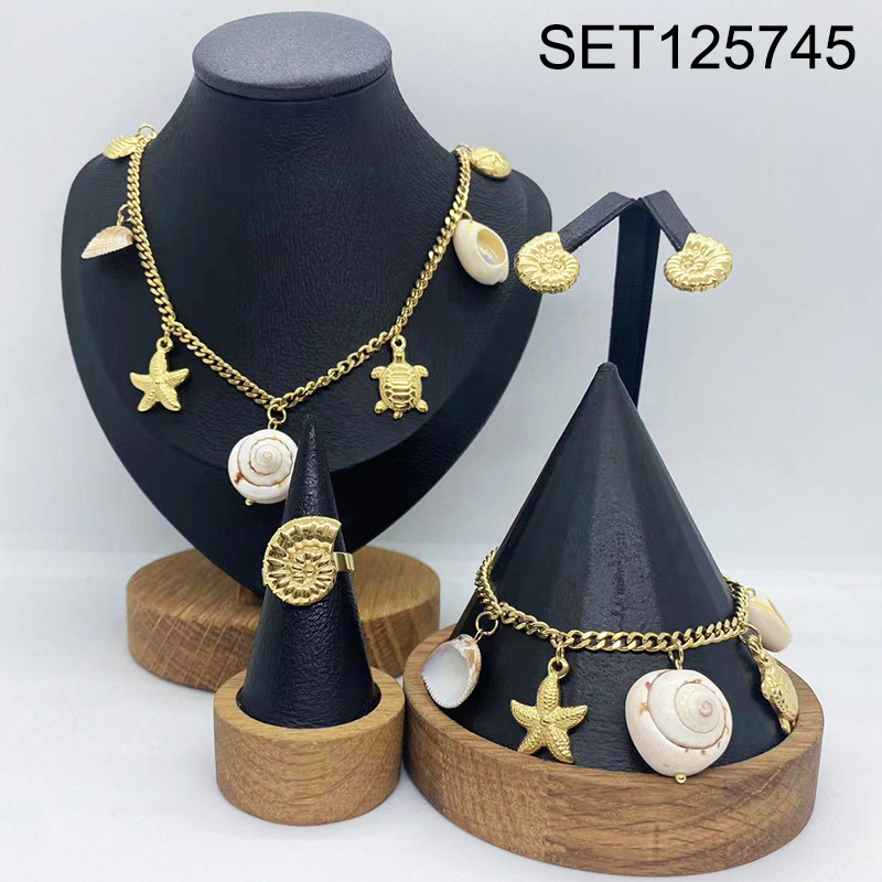 Level B Stainless Steel New Trendy Women Jewelry Summer beach Conch Starfish Turtle Golden 4pcs SET