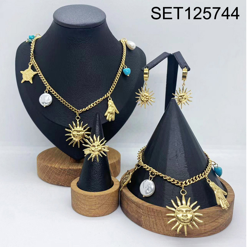 Level B Stainless Steel New Trendy Women Jewelry Sun Hand Golden 4pcs SET