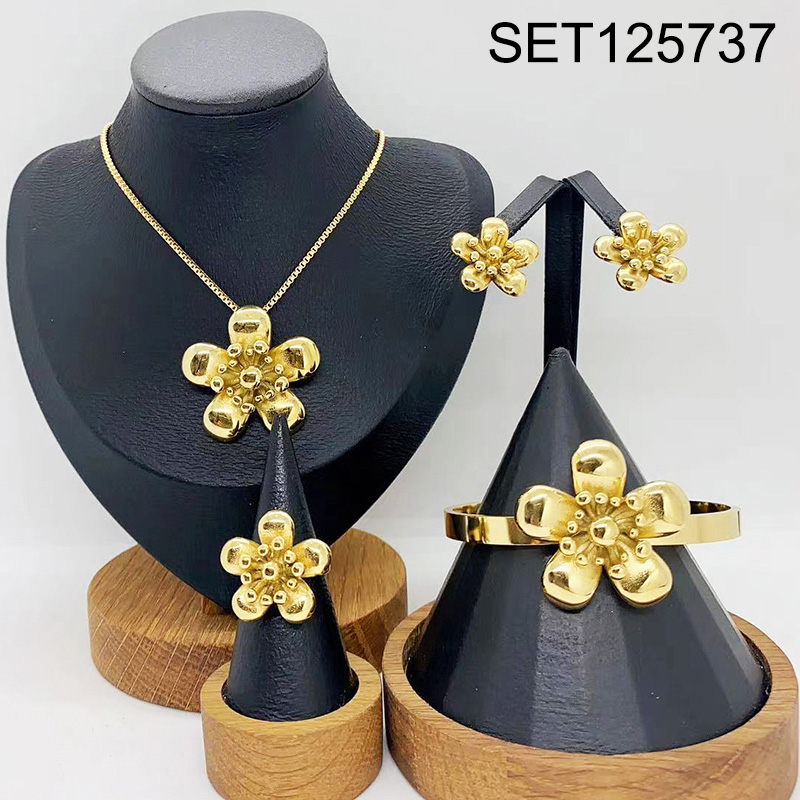 Level B Stainless Steel New Trendy Women Jewelry Flower Golden 4pcs SET