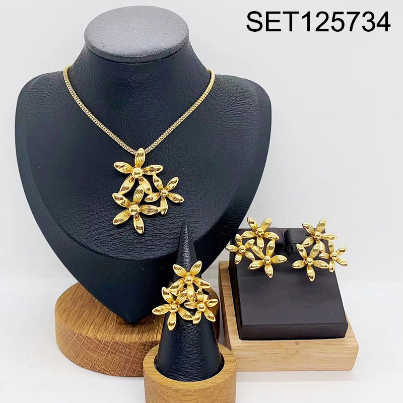 Level B Stainless Steel New Trendy Women Jewelry Flower Golden 3pcs SET