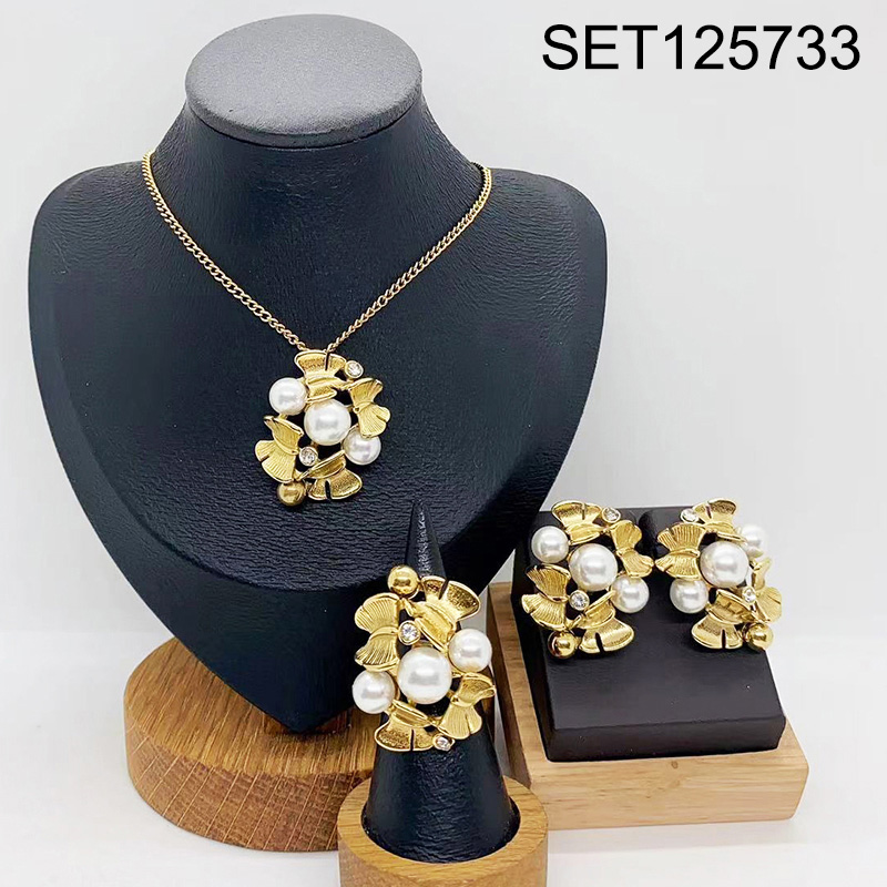 Level B Stainless Steel New Trendy Women Jewelry Pearl Style/Plastic Beads Animal Butterfly Golden 3pcs SET