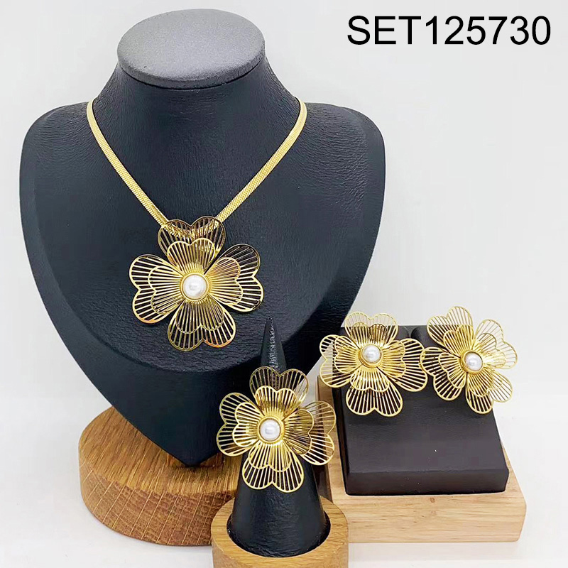 Level B Stainless Steel New Trendy Women Jewelry Pearl Style/Plastic Beads Flower Golden 3pcs SET