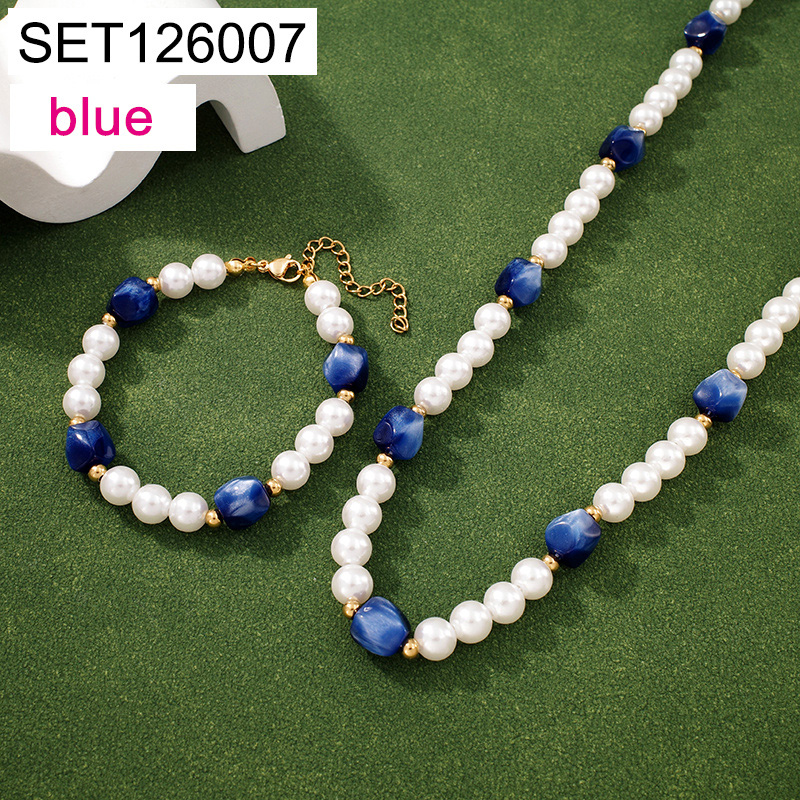 Level C Stainless Steel New Trendy Women Jewelry Pearl Style/Plastic Beads Golden Chain SET
