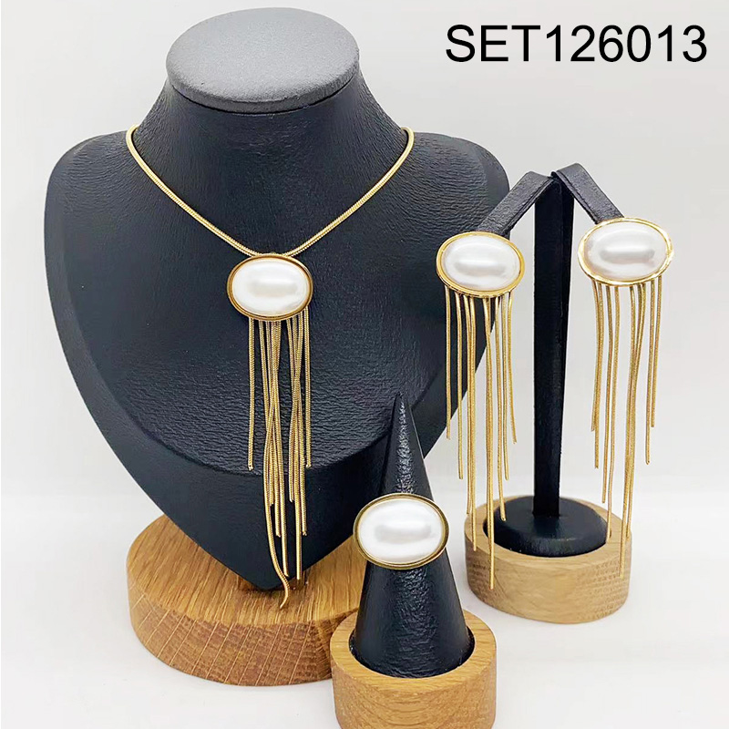 Level B Stainless Steel New Trendy Women Jewelry Pearl Style/Plastic Beads Oval Golden 3pcs SET