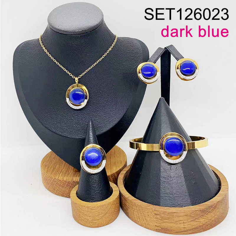 Level B Stainless Steel New Trendy Women Jewelry Round Dark blue Opal Golden 4pcs SET