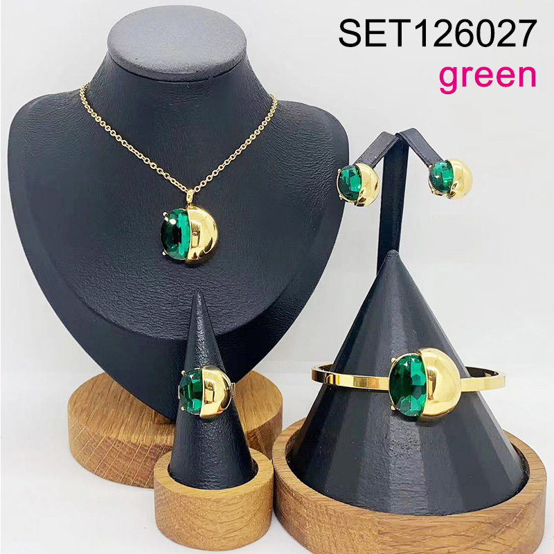 Home > Level B Stainless Steel New Trendy Women Jewelry Oval Green Glass Golden 4pcs SET