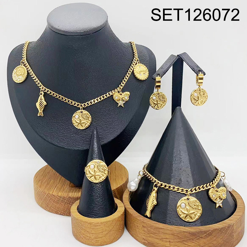 Level B Stainless Steel New Trendy Women Jewelry Summer beach Animal Starfish Shell Fish Golden 4pcs SET