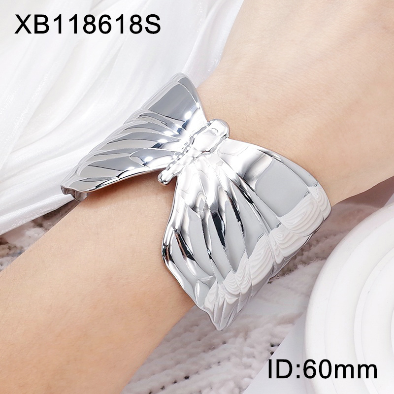 Level A Stainless Steel New Trendy Women Jewelry Animal Butterfly Steel color Bangle;Bangle size can be adjusted freely