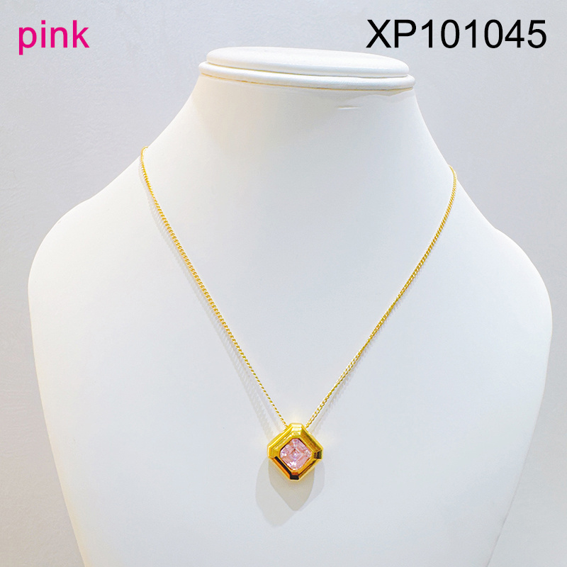 Level B Stainless Steel New Trendy Women Jewelry Square Pink Glass zirconium Golden Pendant