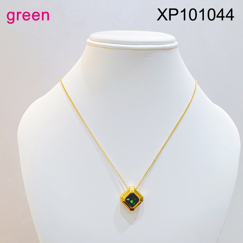 Level B Stainless Steel New Trendy Women Jewelry Square Green Glass zirconium Golden Pendant