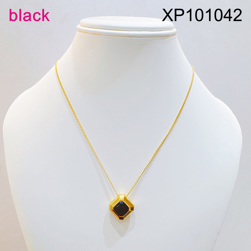 Home > Level B Stainless Steel New Trendy Women Jewelry Square Black Glass zirconium Golden Pendant